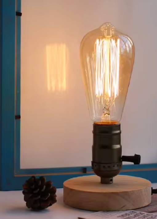 Nous vous proposons aujourd'hui une lampe de chevet sans abat-jour afin que le halo lumineux et chaleureux de celui-ci ne soit pas gêné par un abat-jour mais bien diffusé à travers la pièce. Très jolie ou design avec une ampoule à filament, par exemple, avec une luminosité basse pour voir la beauté de l'ampoule vissée sur cette lampe de chevet en bois.