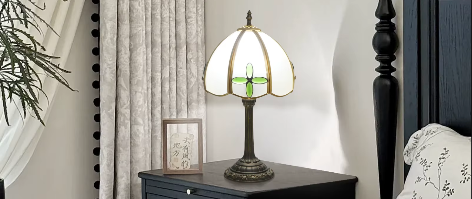 La lampe de chevet abat-jour en verre est un véritable bijou lumineux.