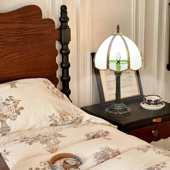 Choisissez notre lampe de chevet abat-jour en verre pour une chambre qui ose dans le thème d'antan. En effet, cette lampe de caractère va soulever l'atmosphère de votre chambre à coucher ou de votre bureau comme il se doit afin de vous accompagner lors de vos rituels du soir tels que la lecture ou la méditation.