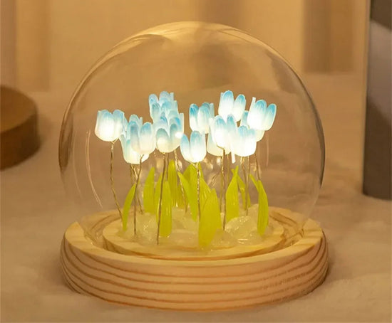 Laissez-vous tenter par l'expérience du DIY de cette lampe de chevet fleur, ainsi vous pourrez disposer les fleurs de la manière dont vous le souhaitez en apportant un esprit unique dans votre chambre à coucher avant de sceller ce bouquet par un dôme de verre lui laissant une intemporalité bien à lui, pour une atmosphère chaleureuse.
